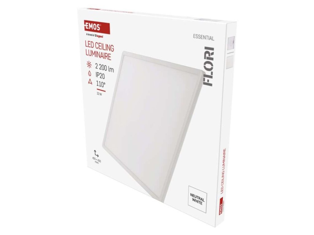 barva světla: neutrální bílá|barva těla: bílá|dálkový ovladač: ne|do chodby a na schodiště: ano|do dílny a garáže: ne|do kanceláře: ne|do koupelny: ne|do kuchyně: ano|do obýváku, ložnice a dětského pokoje: ano|dosah senzoru: neuvádí se|flicker-free: neuvádí se|frekvence: 50/60 Hz|index podání barev (CRI): Ra > 80|kategorie: ESSENTIAL|krytí: IP20|materiál difuzoru: plast|materiál LGP: neuvádí se|materiál těla: plast|montážní otvor: neuvádí se|možnost stmívání: ne|náhrada za žárovku: 130 W|napětí: 220–240 V~|na zahradu a balkon: ne|pohybový senzor: ne|příkon: 22 W|prodejní obal: 1 ks, krabice|proud: 165 mA|řada: FLORI|rozměr: 420 × 420 × 29 mm|světelná účinnost: 100 lm/W|světelný tok: 2 200 lm|teplota chromatičnosti: 4 000 K|tvar: čtverec|typ difuzoru: mléčný|typ svítidla: klasické svítidlo|účiník: > 0,5|UGR<: neuvádí se|úhel vyzařování: 110°|umístění: stropní/nástěnné|výstupní proud ze zdroje: neuvádí se|záruční doba: 2 roky|zdroj světla: LED|životnost: 15 000 hodin|způsob montáže: přisazenéDoplňkové parametry