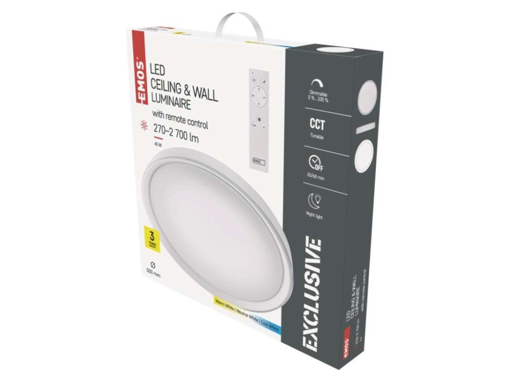 barva světla: teplá bílá–studená bílá|barva těla: bílá|dálkový ovladač: ano|do chodby a na schodiště: ne|do dílny a garáže: ne|do kanceláře: ano|do koupelny: ne|do kuchyně: ano|do obýváku, ložnice a dětského pokoje: ano|dosah senzoru: nemá senzor|flicker-free: ano|frekvence: 50/60 Hz|index podání barev (CRI): Ra > 80|kategorie: EXCLUSIVE|krytí: IP20|materiál difuzoru: plast (PMMA)|materiál LGP: neuvádí se|materiál těla: plast (PS) + ocelový plech|montážní otvor: neuvádí se|možnost stmívání: ano|náhrada za žárovku: 160 W|napětí: 220–240 V|na zahradu a balkon: ne|pohybový senzor: neuvádí se|příkon: 45 W|prodejní obal: 1 ks, krabice|proud: 340 mA|řada: ILVI|rozměr: průměr 500 × 70 mm|světelná účinnost: 60 lm/W|světelný tok: 270–2 700 lm|teplota chromatičnosti: 2 700–6 500 K|tvar: kruh|typ difuzoru: mléčný|typ svítidla: klasické svítidlo|účiník: > 0,9|UGR<: neuvádí se|úhel vyzařování: 120°|umístění: stropní|výstupní proud ze zdroje: 250 mA|záruční doba: 3 roky|zdroj světla: LED|životnost: 30 000 hodin|způsob montáže: přisazenéDoplňkové parametry