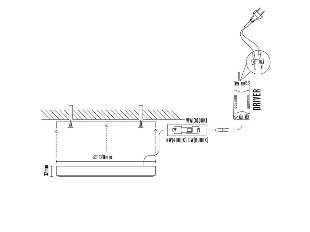 Možnost výběru neutrální, studené nebo teplé bílé barvy světla, kterou je možné nastavit pomocí vypínače.