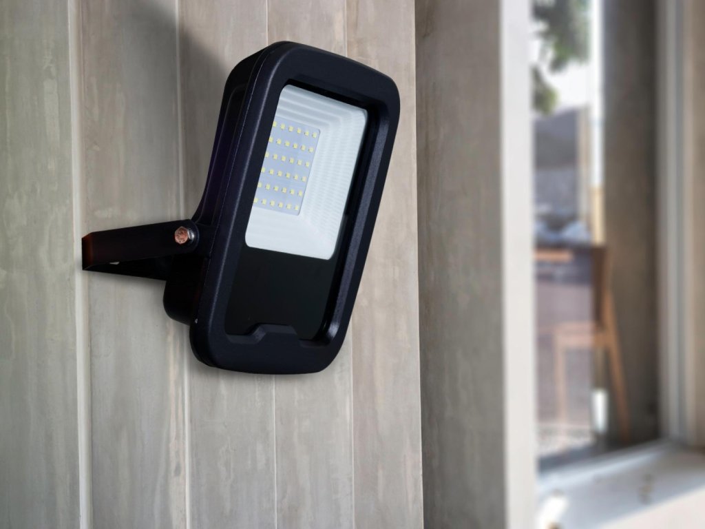 LED reflektor LF6023 v černé barvě, s výkonem 30W, svítivostí 3600Lm a barvou světla 5000K, disponuje držákem a vysoce kvalitním LED čipem.