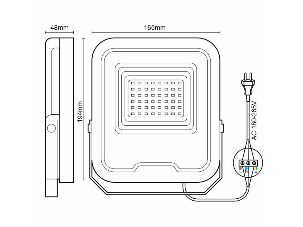 LED reflektor LF6033W v černém provedení disponuje držákem a vysoce kvalitními LED čipy.