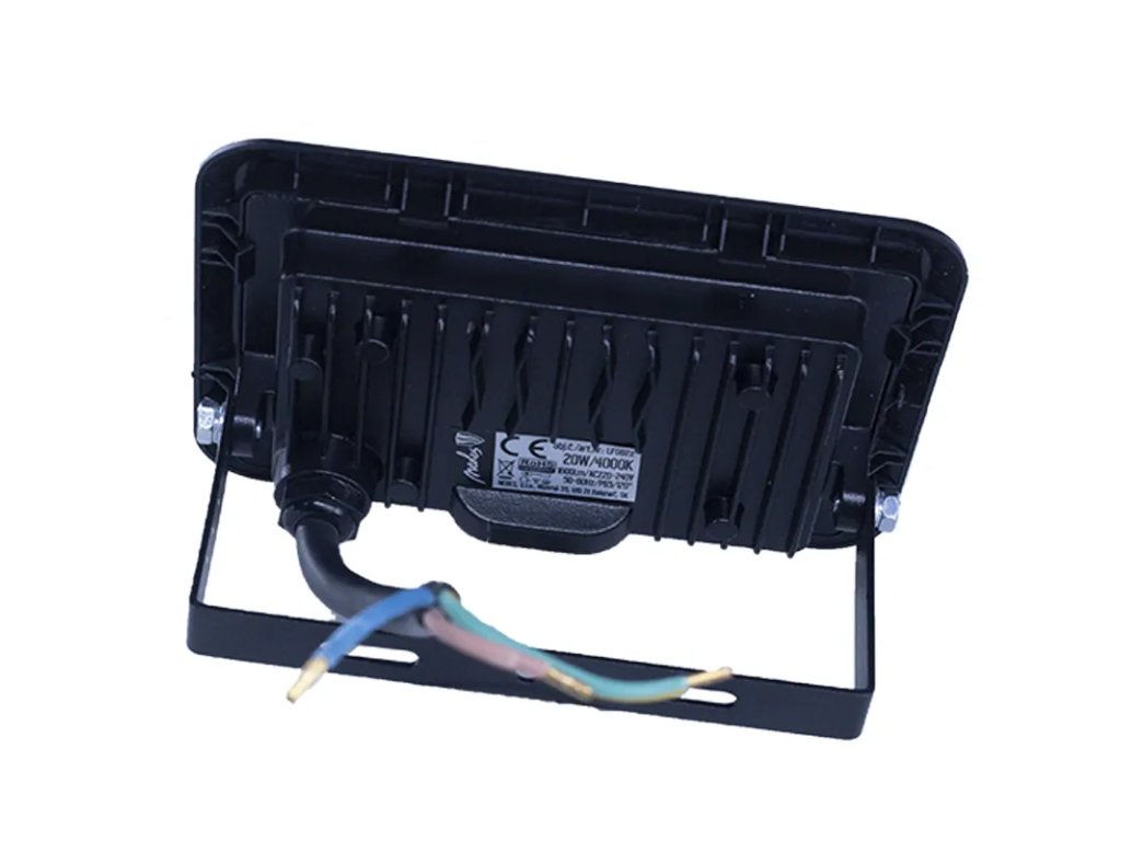 LED reflektor LF0022 v černé barvě, s výkonem 20W, svítivostí 1600Lm a barvou světla 4000K, disponuje držákem a vysoce kvalitním LED čipem.