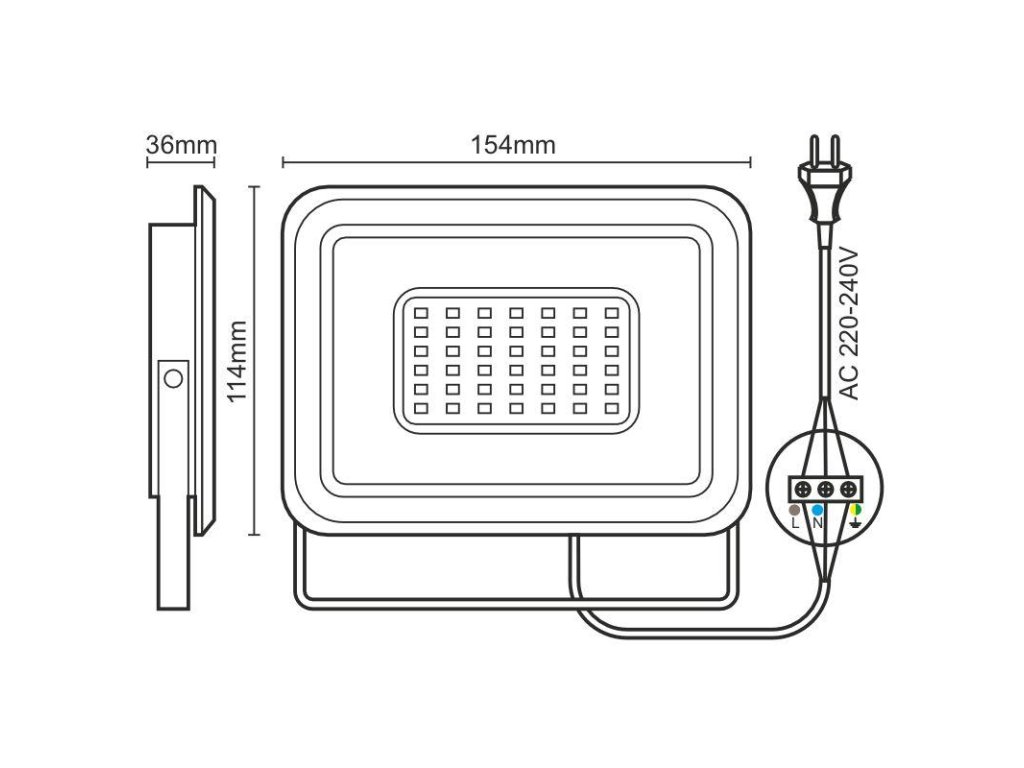LED reflektor LF0023 v černé barvě, s výkonem 30W, svítivostí 2400Lm a barvou světla 4000K, disponuje držákem a vysoce kvalitním LED čipem.