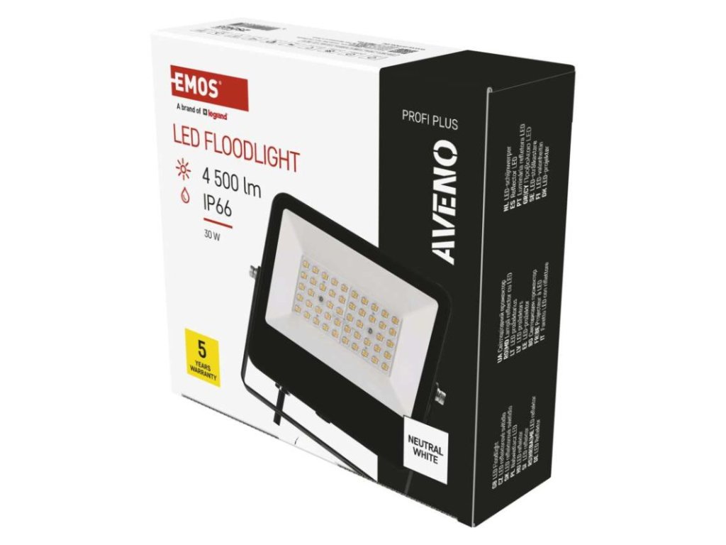 akumulátor: neuvádí se|barva: černá|barva světla: neutrální bílá|délka přívodního kabelu: 1 m|doba svícení na AKU: neuvádí se|dosah PIR senzoru: nemá PIR|energetická třída použitého světelného zdroje: C|flicker-free: neuvádí se|frekvence: 50/60 Hz|index podání barev (CRI): Ra > 80|kategorie: PROFI PLUS|krytí: IP66|materiál difuzoru: sklo|materiál přívodního kabelu: guma|materiál těla: hliník|napájení: ze sítě|napětí: 220–240 V|PIR senzor: ne|počet průchozích zásuvek: 0|použití: povrchová montáž|příkon: 30 W|prodejní obal: 1 ks, krabice|proud: 135 mA|řada: AVENO|rozměr: 196 × 183 × 37 mm|rozsah pracovní teploty: -30 °C až +50 °C|stmívání: ne|stupeň ochrany proti mechanickým nárazům: IK08|světelná účinnost: 150 lm/W|světelný tok: 4 500 lm|teplota chromatičnosti: 4 000 K|typ přívodního kabelu: neuvádí se|typ průchozích zásuvek: neuvádí se|typ stmívání: –|účiník: > 0,9|úhel vyzařování: 100°|záruční doba: 5 let|zdroj světla: LED|životnost: 50 000 hodin|zkušební žárovka součástí balení: neuvádí seDoplňkové parametry