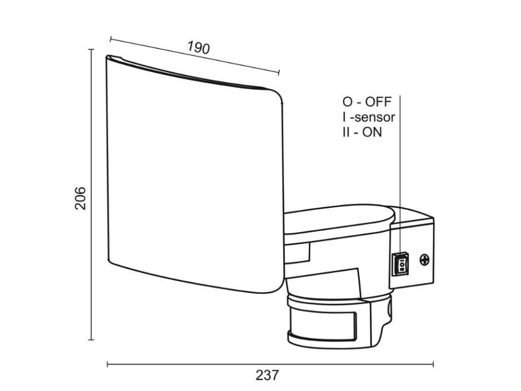 2. vypínač - nastavení 3 módů ( O-vypnuto, I-senzor, II-stálé zapnutí )