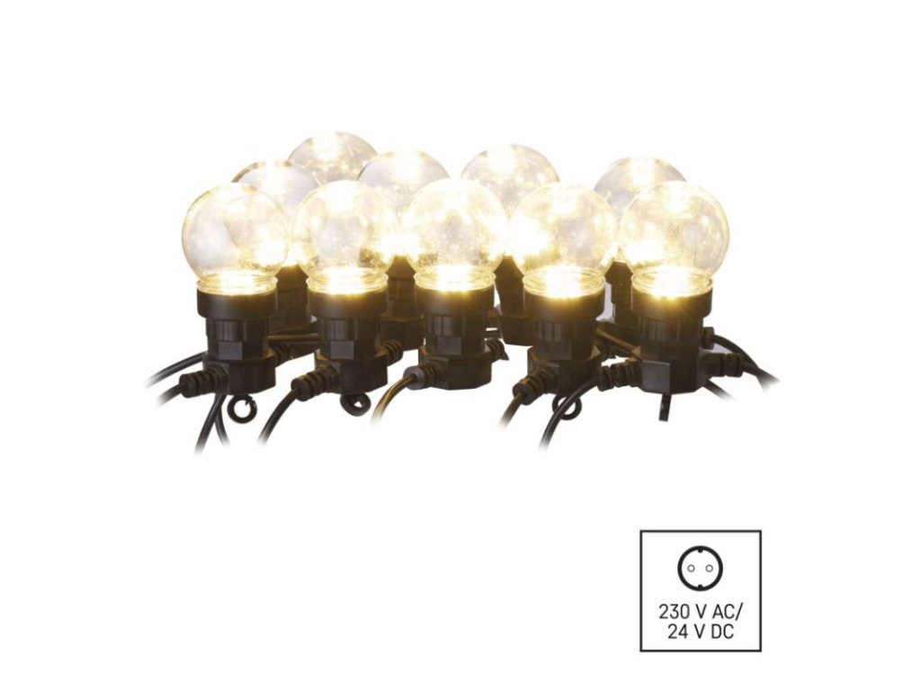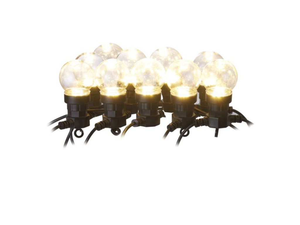 LED světelný řetěz – 10x párty žárovky čiré, 5 m, venkovní i vnitřní, teplá bílá