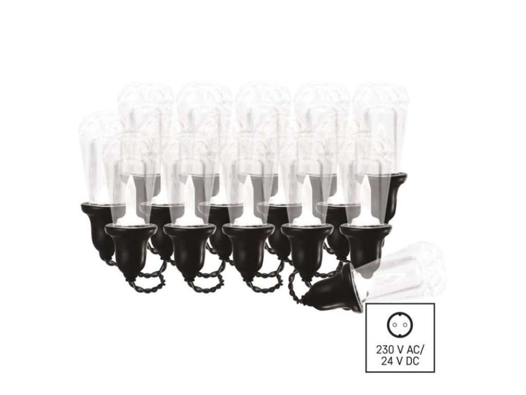 barva drátu: černá|barva světla: teplá bílá|časovač: ne|dálkový ovladač: ne|délka přívodu: 5 m|krytí: IP44|materiál: plast|počet LED: 16|použití: venkovní i vnitřní|příkon: 6 W|prodejní obal: 1 ks, krabice|produkt: girlanda|rozměr: 7,6 m|typ napájení: síťový adaptér|vstupní napětí: 230 V AC|výstupní napětí: 24 V DC|záruční doba: 2 roky|zdroj svícení: LED|životnost: 10 000 hodinDoplňkové parametry
