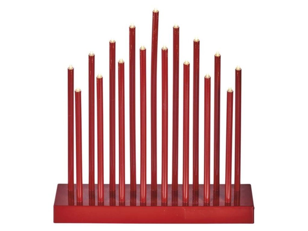 LED svícen červený, 28,5 cm, 3x AA, vnitřní, teplá bílá, časovač