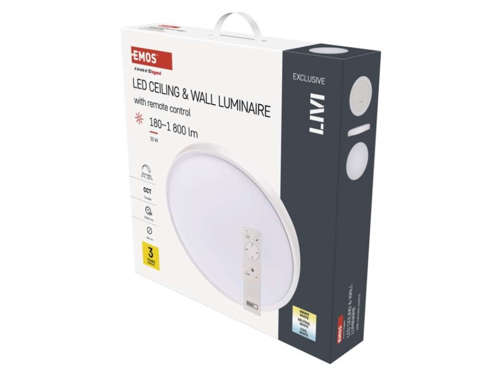 barva světla: teplá bílá–studená bílá|barva těla: bílá|dálkový ovladač: ano (2× AAA, R03)|do chodby a na schodiště: ano|do dílny a garáže: ne|do kanceláře: ano|do koupelny: ne|do kuchyně: ano|do obýváku, ložnice a dětského pokoje: ano|dosah senzoru: nemá senzor|flicker-free: ano|frekvence: 50/60 Hz|index podání barev (CRI): Ra > 80|kategorie: EXCLUSIVE|krytí: IP20|materiál difuzoru: plast (PMMA)|materiál LGP: neuvádí se|materiál těla: ocelový plech|montážní otvor: neuvádí se|možnost stmívání: ano|náhrada za žárovku: 110 W|napětí: 220–240 V|na zahradu a balkon: ne|pohybový senzor: neuvádí se|příkon: 30 W|prodejní obal: 1 ks, krabice|proud: 300 mA|řada: LIVI|rozměr: průměr 400 × 85 mm|světelná účinnost: 60 lm/W|světelný tok: 1 800 lm|teplota chromatičnosti: 2 700–6 500 K|tvar: kruh|typ difuzoru: mléčný|typ svítidla: klasické svítidlo|účiník: > 0,9|UGR<: neuvádí se|úhel vyzařování: 115°|umístění: stropní/nástěnné|výstupní proud ze zdroje: 175 mA|záruční doba: 3 roky|zdroj světla: LED|životnost: 30 000 hodin|způsob montáže: přisazenéDoplňkové parametry