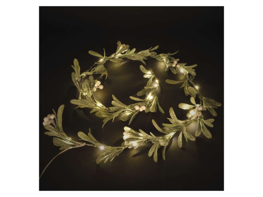 LED vánoční girlanda - jmelí, 1,5 m, 3x AA, vnitřní, teplá bílá, časovač