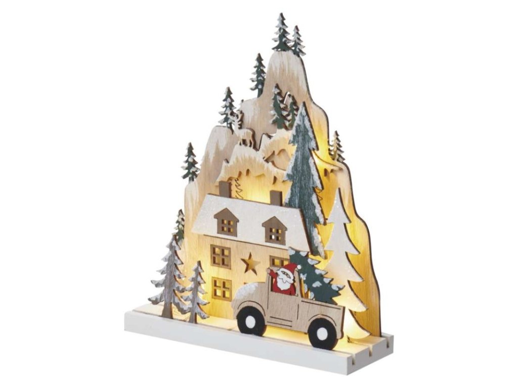 LED vánoční krajinka dřevěná, 22 cm, 2x AA, vnitřní, teplá bílá, časovač