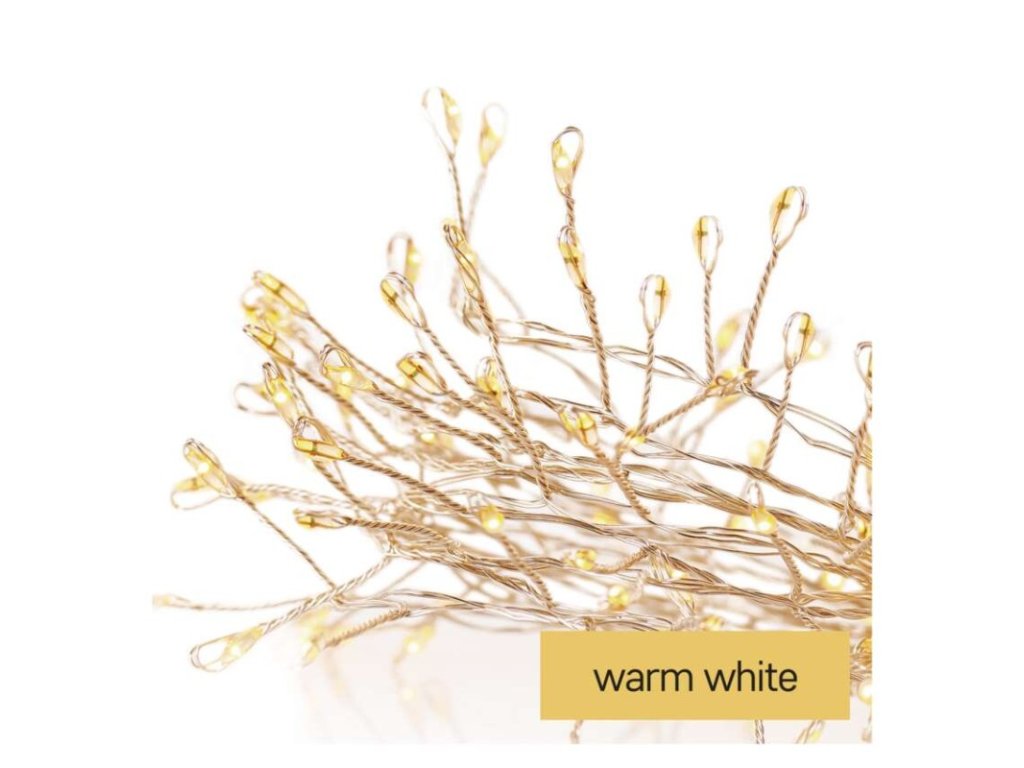barva drátu: stříbrná|barva světla: teplá bílá|časovač: ano|dálkový ovladač: ne|délka přívodu: 0,3 m|funkce: svítí|krytí: IP20|LED mezera: 2,4 cm|materiál: kov|možnost propojení: ne|počet LED: 100|použití: vnitřní|příkon: 0,9 W|prodejní obal: 1 ks, krabice|produkt: ježek|pro výšku stromu: neuvádí se|rozměr: 2,4 m|tvar: nano|typ napájení: baterie 3× AA (není součástí balení)|velikost LED: 3 mm (nano)|vstupní napětí: neuvádí se|výstupní napětí: 4,5 V DC|záruční doba: 2 roky|životnost: 10 000 hodinDoplňkové parametry