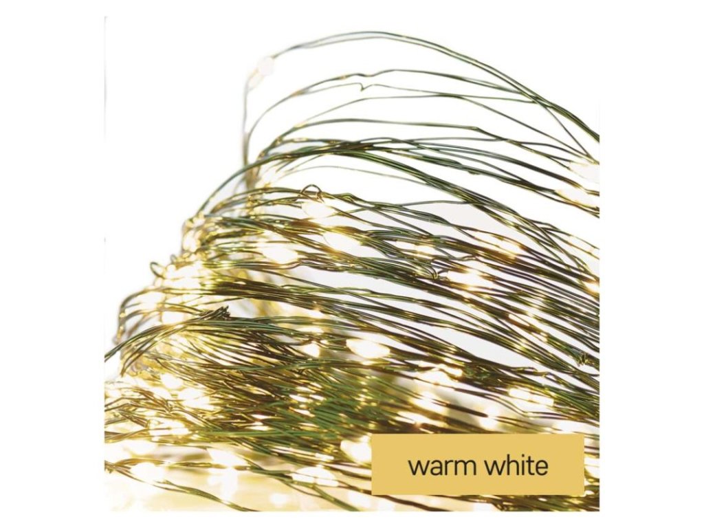 LED vánoční nano řetěz zelený, 7,5 m, venkovní i vnitřní, teplá bílá, časovač