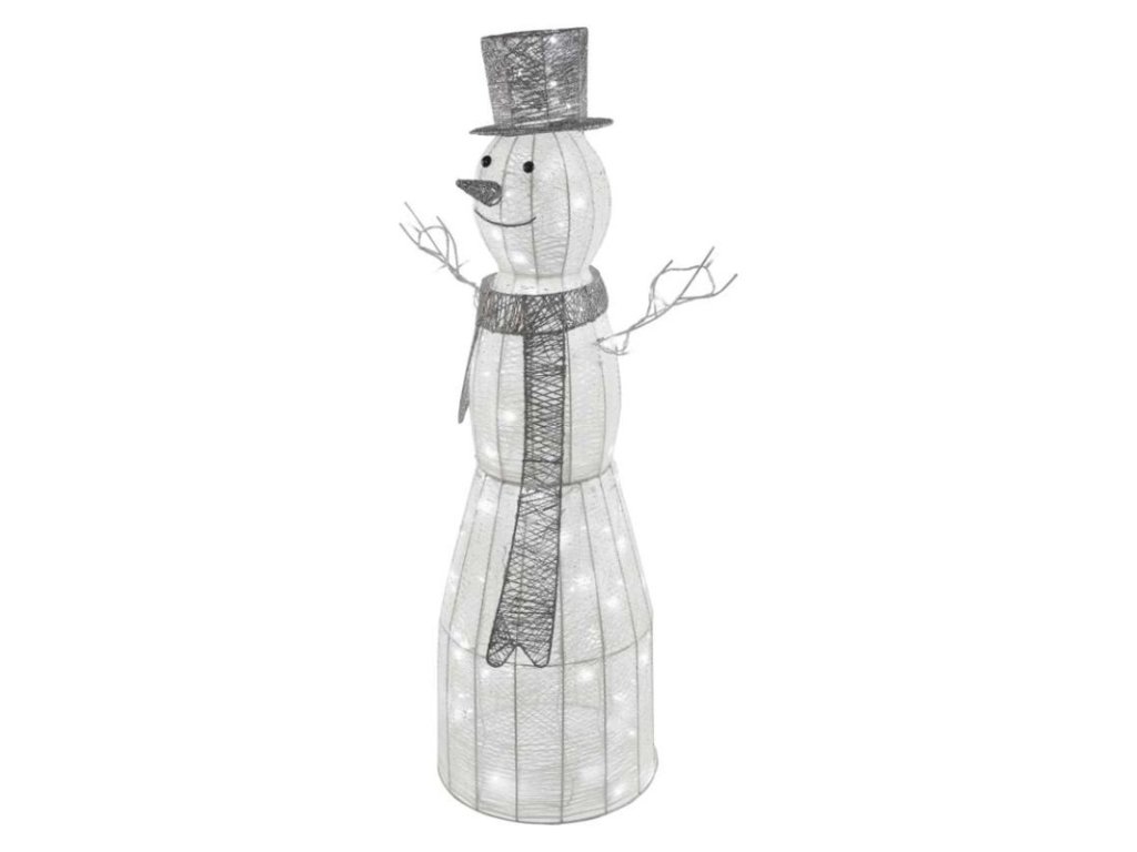 LED vánoční sněhulák ratanový, 124 cm, vnitřní, studená bílá, časovač