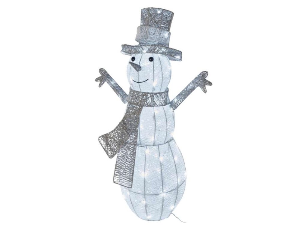 LED vánoční sněhulák ratanový, 82 cm, venkovní i vnitřní, studená bílá, časovač