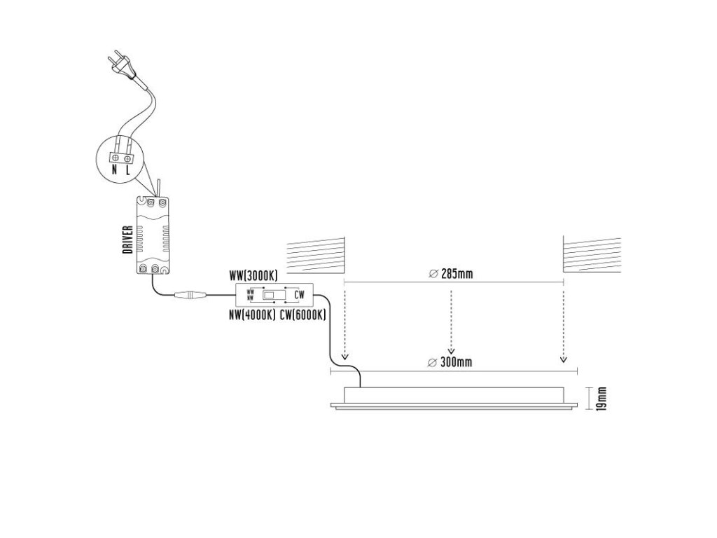 Panel je bezúdržbový a dodáván s pružinkami, které slouží k upevnění panelu například do sádrokartonových stropů. Je nutné udělat montážní otvor s průměrem 280 mm.