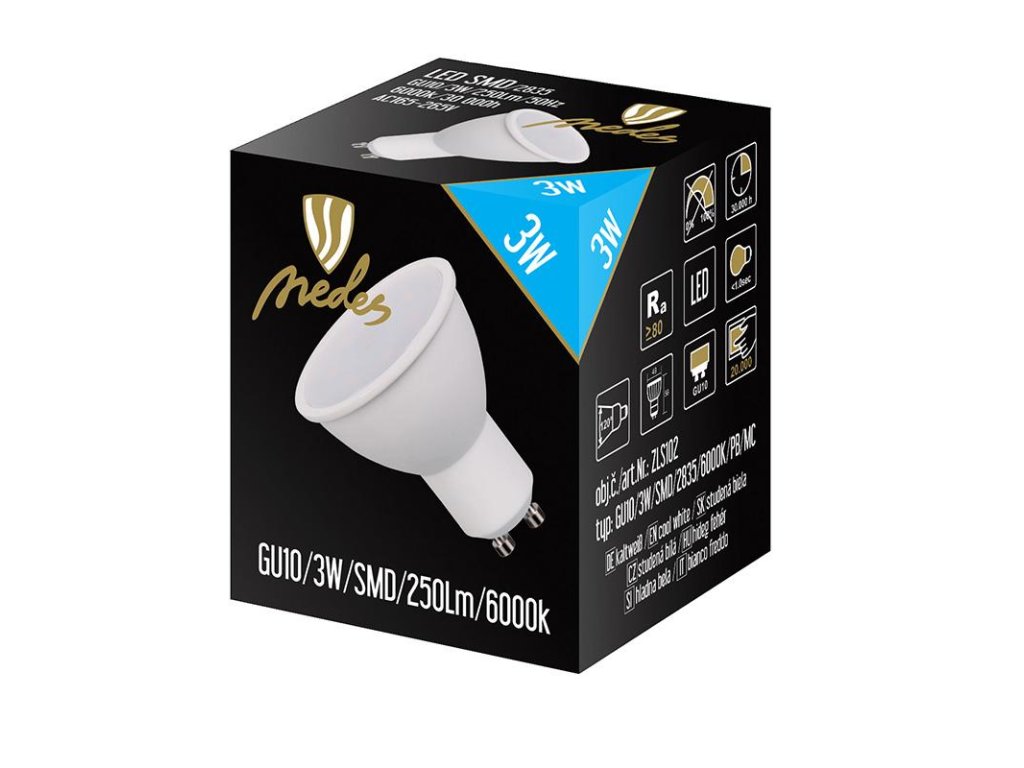 LED žárovka ZLS102 značky NEDES je úsporná žárovka se spotřebou 3W, světelným tokem 250Lm a paticí GU10.