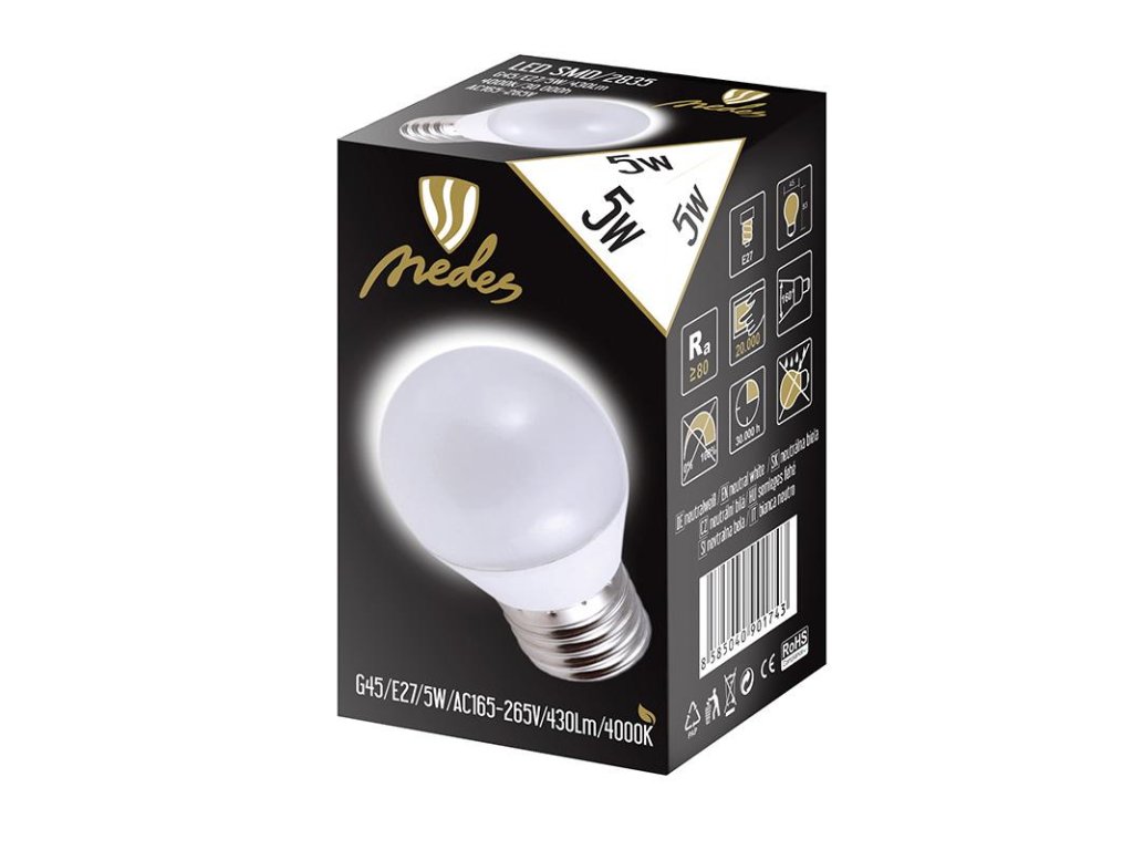 LED žárovka 5W - G45 / E27 / SMD / 4000K - ZLS827