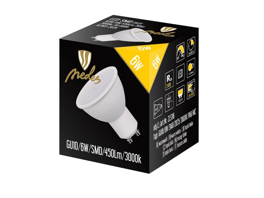 LED žárovka ZLS116 značky NEDES je úsporná žárovka se spotřebou 6W, světelným tokem 490Lm a paticí GU10.