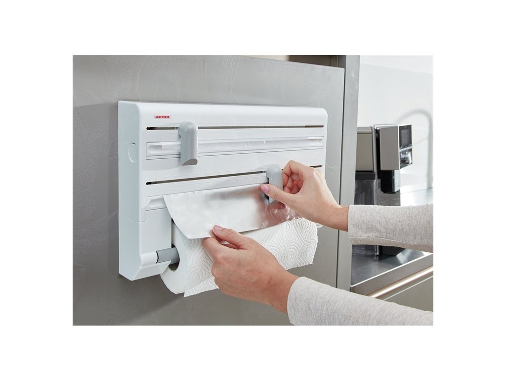 praktický zásobník na balící folie, papírové utěrky, alobal či sáčky na potraviny, vyrobený z vysoce kvalitního plastu v originálním designu, snadné a rychlé oddělení požadované délky, záruka 3 roky