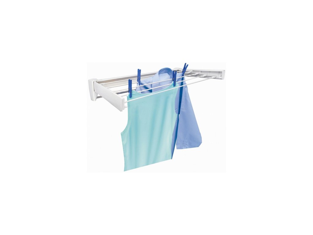 nástěnný koupelnový sušák, skládací,šetří místo, 8 m sušicí plochy, šířka tyčí 100 cm, samostatný chromovaný věšák na osušky,bílá, modráDoplňkové parametry