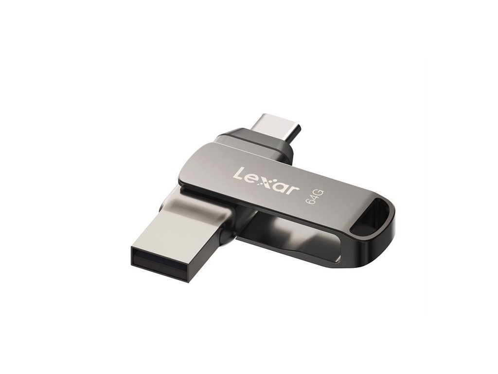 USB flash disk Lexar D400, kapacita 64GB, Duální USB flash USB-C & USB-A 3.1, čtení až 130MB/s, prémiový kovový design, šedá barva, poutko pro uchycení, zabezpečení Lexar DatashieldDoplňkové parametry