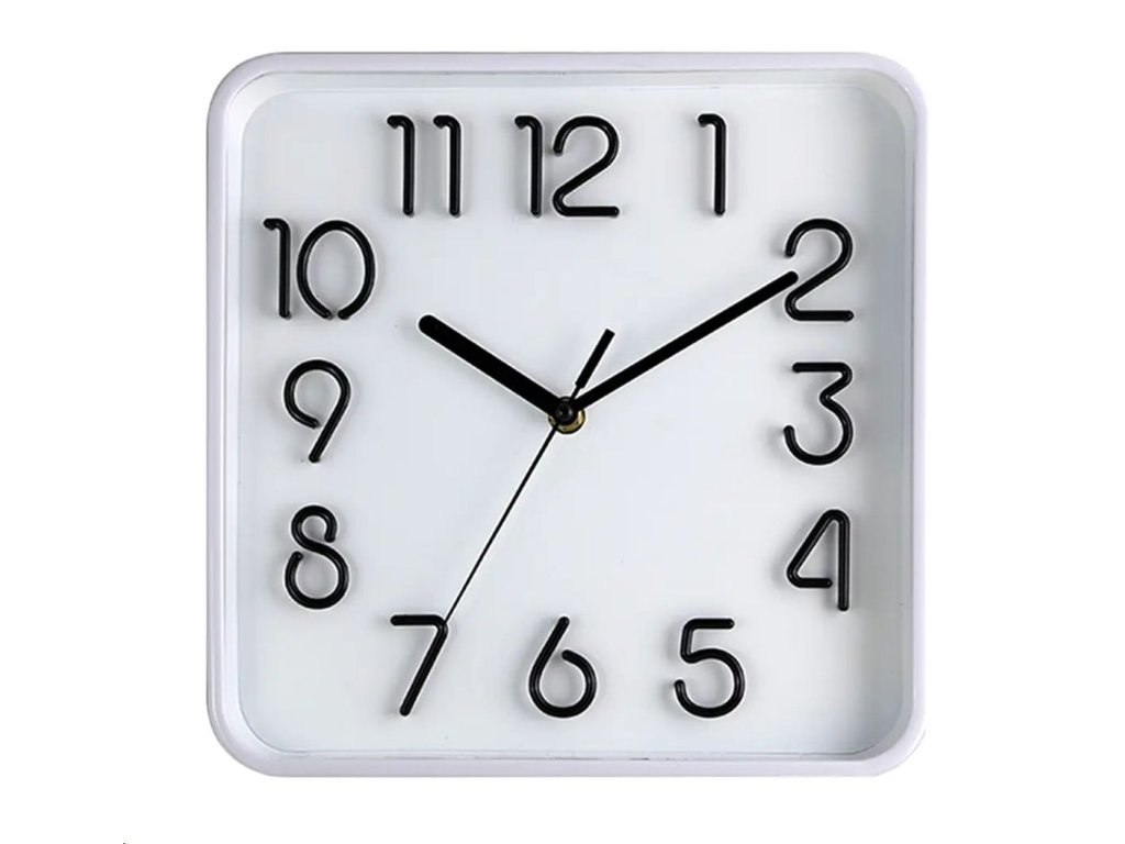 (BAL:1/20) Hodiny nástěnné 25,3 x 25,3 cm, 3D ciferník, sklo, plast, BÍ.Rozměry: 25,3 x 25,3 cm.Materiál: plast, kov, sklo. Barva: bílý rám / bílý podklad / černá čísla. Baterie: 1 x AA (baterie není součástí balení)Kvalitní a originální nástěnné hodiny dodají Vašemu domovu styl.Díky univerzálnímu designu je lze použít prakticky kdekoliv.Balení: papírová krabička s průhledem.Doplňkové parametry
