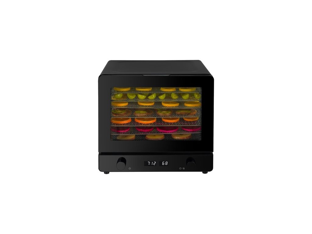 infra červené záření suší šetrným způsobem (zachovává přirozenou barvu, výraznější chuť, vitamíny, minerály) • *INFRA sušení zkracuje dobu až o polovinu (oblíbené JERKY za 3 hodiny) • vysoký topný výkon 500 W • extra tichý provoz < 47dB • 360° cyklus ohřevu • vnitřní objem neskutečných 28,5 lDoplňkové parametry
