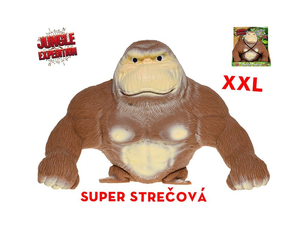 (BAL:1/8ks) Gorila super strečová XXL Jungle Expedition 22cm, 2kgVyrobená z vysoce kvalitního, super pružného materiálu, může být tažena, mačkána a kroucena nejrůznějšími způsoby, což nabízí jedinečně uspokojující smyslový zážitek. Barva: hnědá,Rozměr balení: 23,7x25x10cm. Nevhodné pro děti do 3 let. Balení: výstavní krabička.Doplňkové parametry