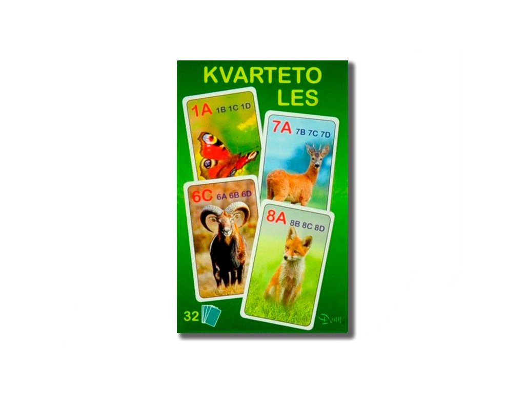 (BAL:1/200ks) Kvarteto les 7x10,5x1,5cm 32ks v krabičce.Hrací karty na hru kvarteto.Balení obsahuje 32 karet.Vhodné pro děti od 3 let.Balení: papírová krabička.Doplňkové parametry