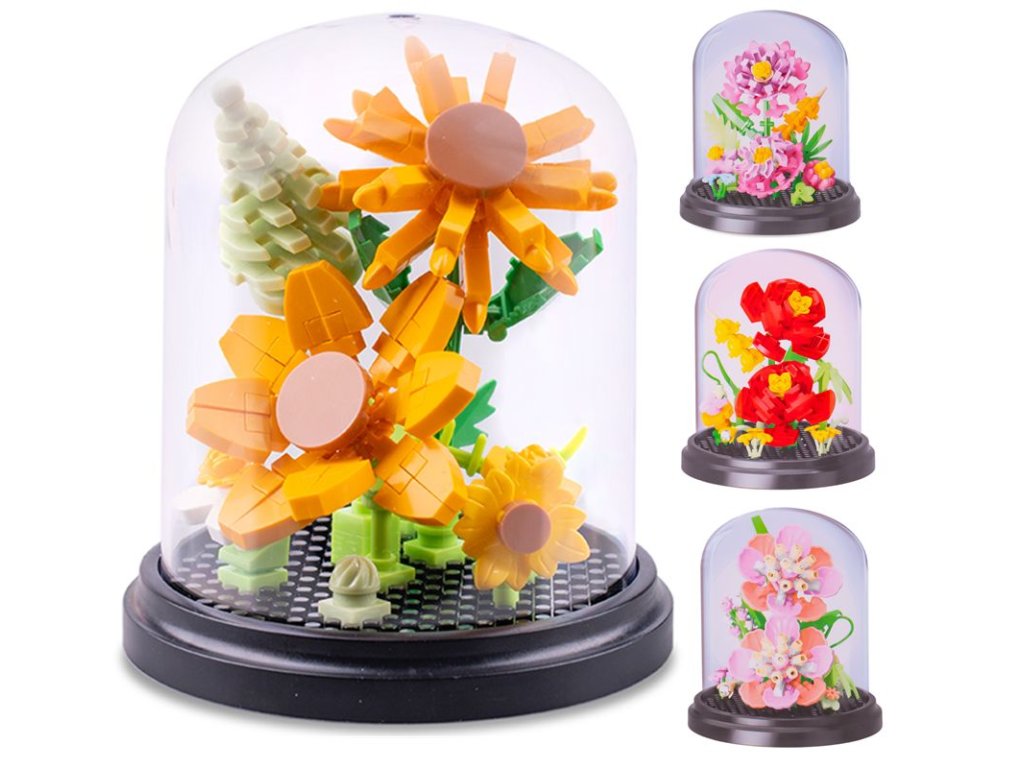 (BAL:1/60/120ks) Stavebnice květiny Boutique.Konstrukční stavebnice.Design: Květiny. 4 RŮZNÉ DRUHY. Stavebnice nezabere mnoho času, je zábavná a vypadá skvěle i jako domácí dekorace. Součástí: transparentní kryt proti prachu. Rozměr: 110 x 86mm. Balení obsahuje 224-229ks dílků a návod. Balení: papírová krabička. Cena za jeden kus.Doplňkové parametry