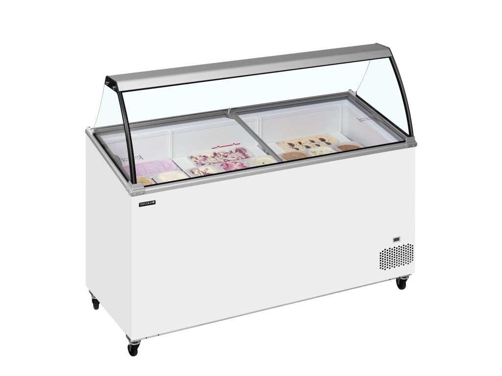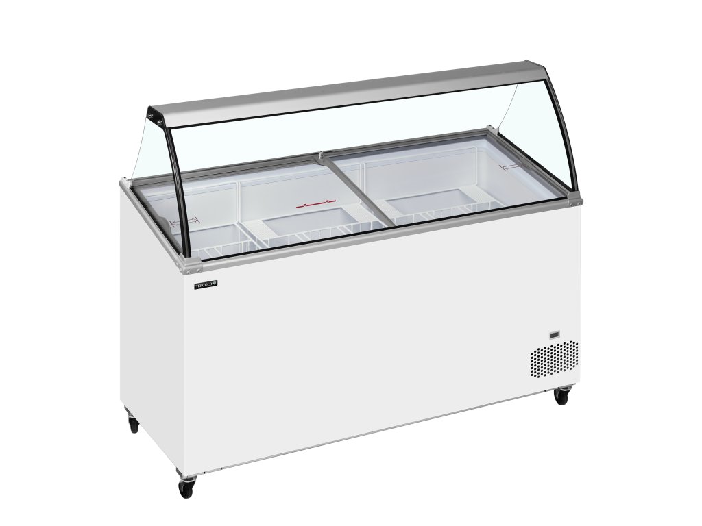 Řada distributorů zmrzliny IC SC SO nabízí skvělou kvalitu za výhodnou cenu. Tyto distributory mají rovná posuvná víka, která chrání prostor se zmrzlinou před únikem chladu, která jsou navíc opatřena zámkem. Ochraný kryt má oblíbený oblý tvar a díky svému jednoduchému designu je distributor ideální pro reklamní polep. Všechny modely této řady jsou optimalizovány pro koše, které pojmou 5l vaničky na zmrzlinu. Koše nejsou součástí, typ a počet je nutné objednat zvlášť. Distributor zmrzliny se skládá ze dvou částí (mraznička + skleněná nástavba), které se mohou na faktuře objevit jako samostatné položky.Doplňkové parametry