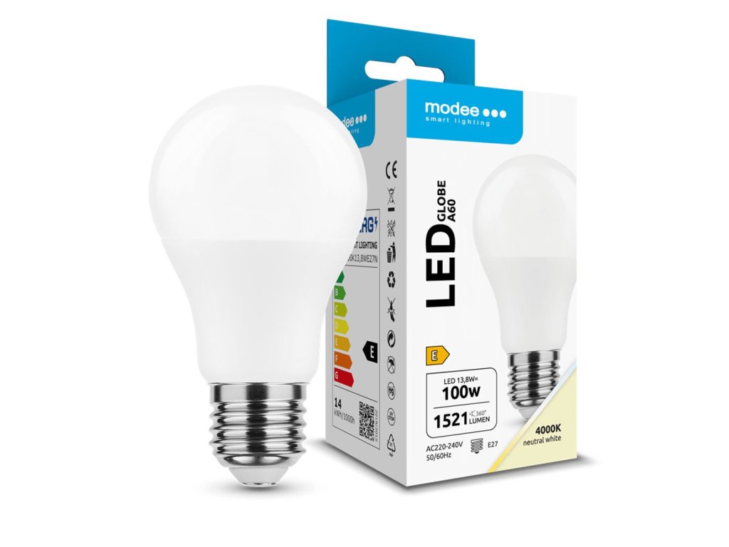 Modee E27 13,8W A60 LED studená 4000K