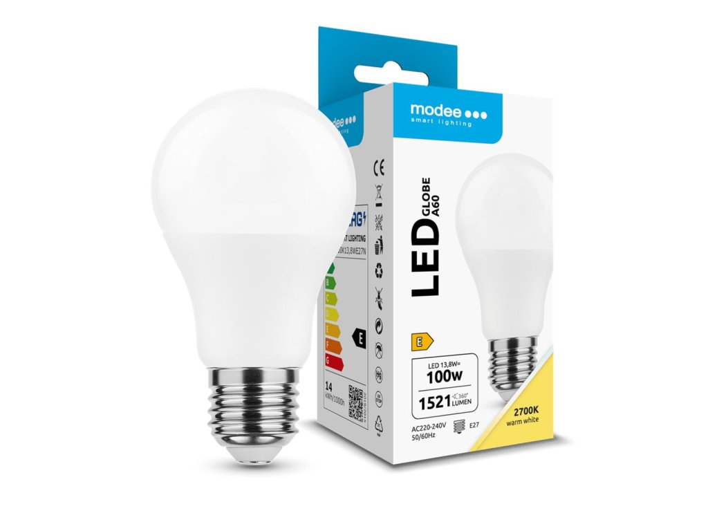 (BAL:1/10/100) .Patice: E27. Modelová řada: A60.Výkon: 13,8W (náhrada za 100W). Teplota chromatičnosti: teplá 2700K. Světelný tok: 1521lm.Napětí: 220V-240V AC.Úhel vyzařování: 200°.Počet zap./vyp.: 12500x.Životnost: 25000hod. Energetická třída: E. Rozměry: 60x120mm. Balení: krabička se závěsem.Doplňkové parametry