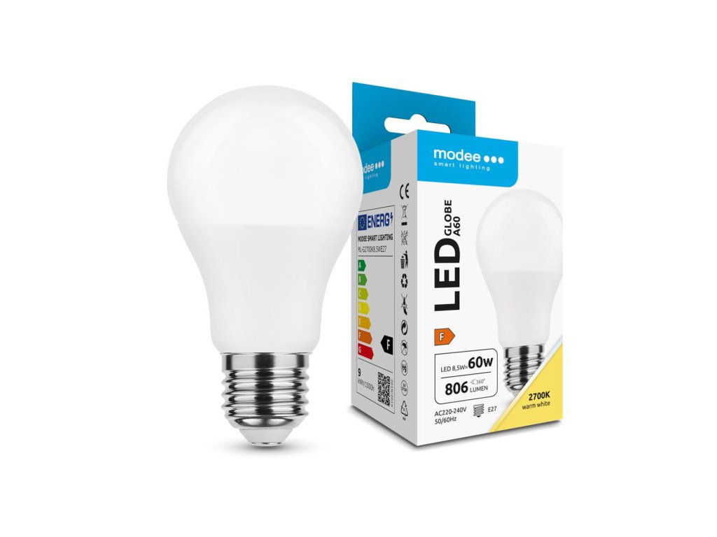 Modee E27 8,5W A60 LED teplá 2700K
