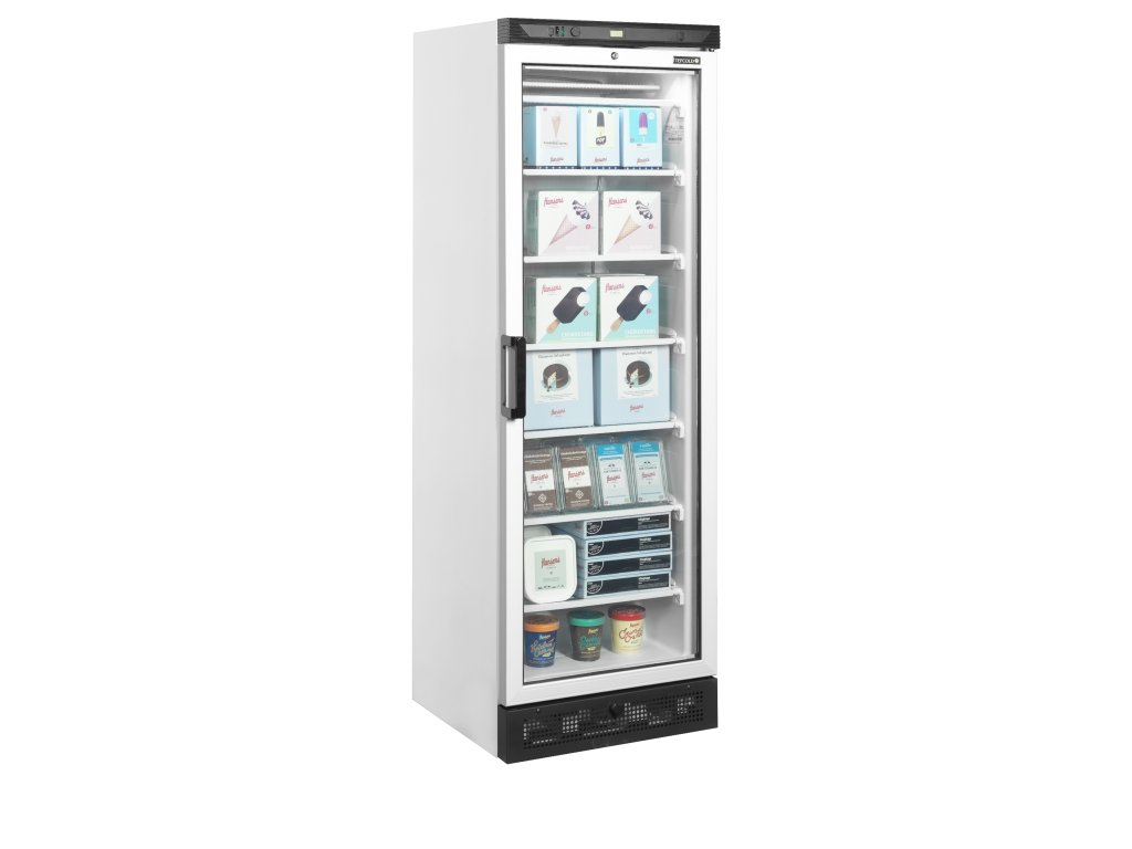 Mrazicí skříň prosklené dveře, bílá, rám hliníkUFFS371G