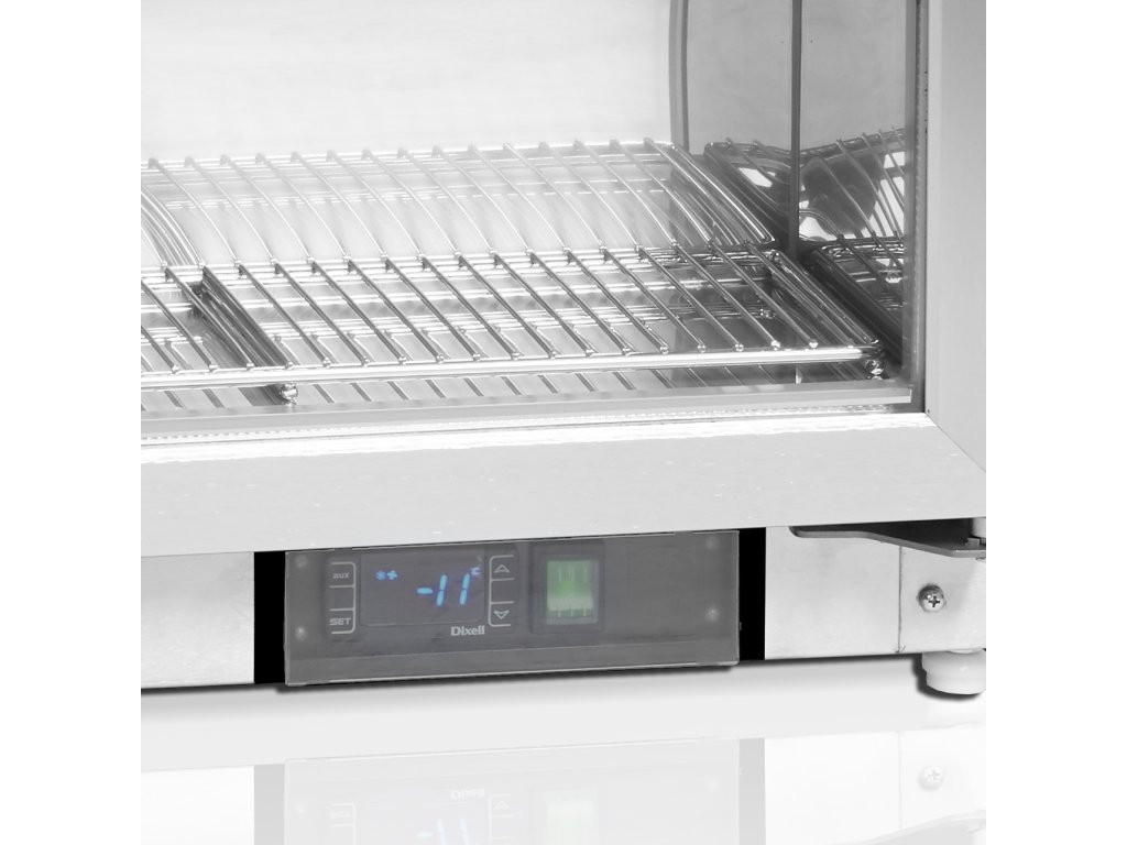 Prosklená mrazicí skříň GF200VSG je skvělým pomocníkem pro každou provozovnu, která podává studené nápoje. Prostorná vitrína s nastavitelnými policemi pojme mnoho sklenic, ale zároveň se díky kompaktním rozměrům vejde na stůl. Účinný systém ventilovaného chlazení zajišťuje rychlé snížení teploty, takže sklenice můžete rychle namrazit a vyhovět tak poptávce zákazníků.Doplňkové parametry