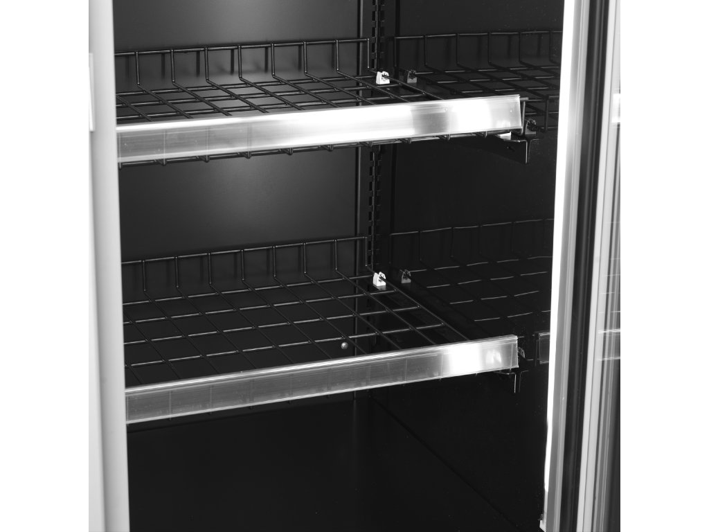 Přístěnné mrazicí vitríny řady EXTRA jsou vybaveny křídlovými dveřmi s dvojitým sklem, které zvyšují energetickou účinnost. Mají extra hluboké police přinášející maximální skladovací kapacitu, a díky nastavitelným policím s funkcí naklápění je snadné vitrínu přizpůsobit vašim potřebám. Tento model umožňuje spojení několika skříní, a zvyšuje tak vaše možnosti, jak maximálně využít prostor, který máte k dispozici (je nutné použít spojovací sadu).Doplňkové parametry