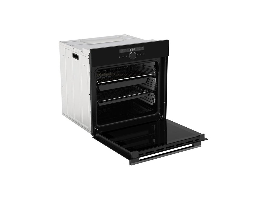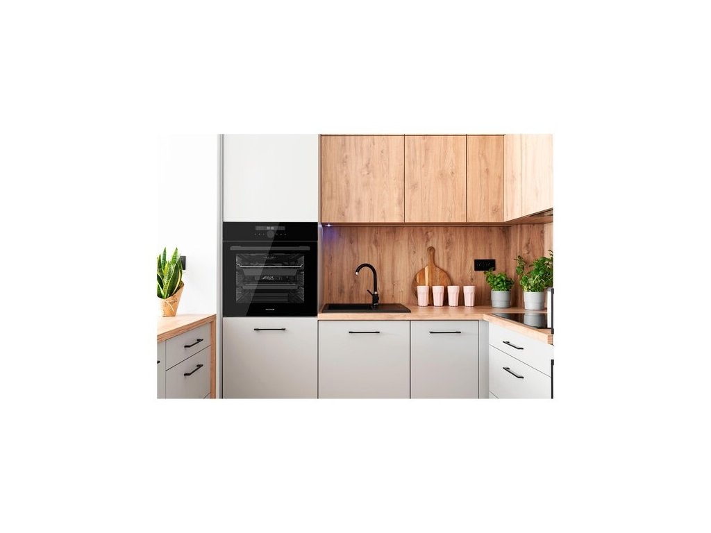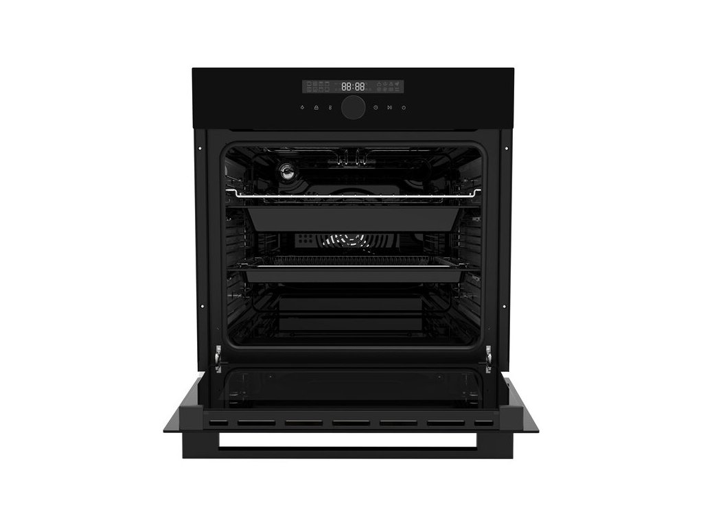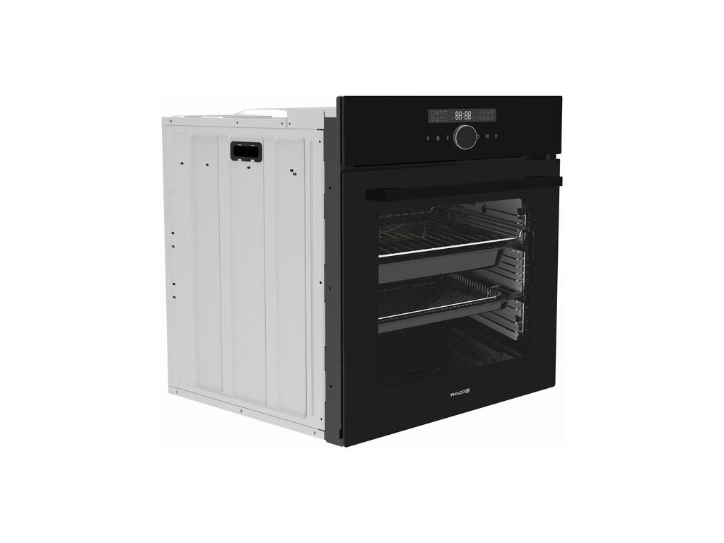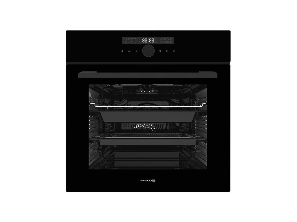 Vestavná trouba Philco POB 7614 SFCB King s velkým objemem 76 l, přináší nejen širokou nabídku funkcí, ale i skvělou úsporu času při údržbě. Kromě 14 programů včetně AirFry, pečení s podporou páry SteamBase a speciálního programu Pizza s teplotou až 310°C zvládá také nízkoteplotní pečení až 24 hodin – ideální například pro přípravu masa metodou Sous Vide.Dotykové ovládání v kombinaci s otočným knoflíkem a bíle podsvíceným displejem zajišťuje jednoduchou a intuitivní obsluhu. Bezpečnostní prvky jako dětská pojistka, trojité sklo dveří, teleskopický výsuv a tiché dovírání dvířek SoftClose přispívají k pohodlnému a bezpečnému provozu.