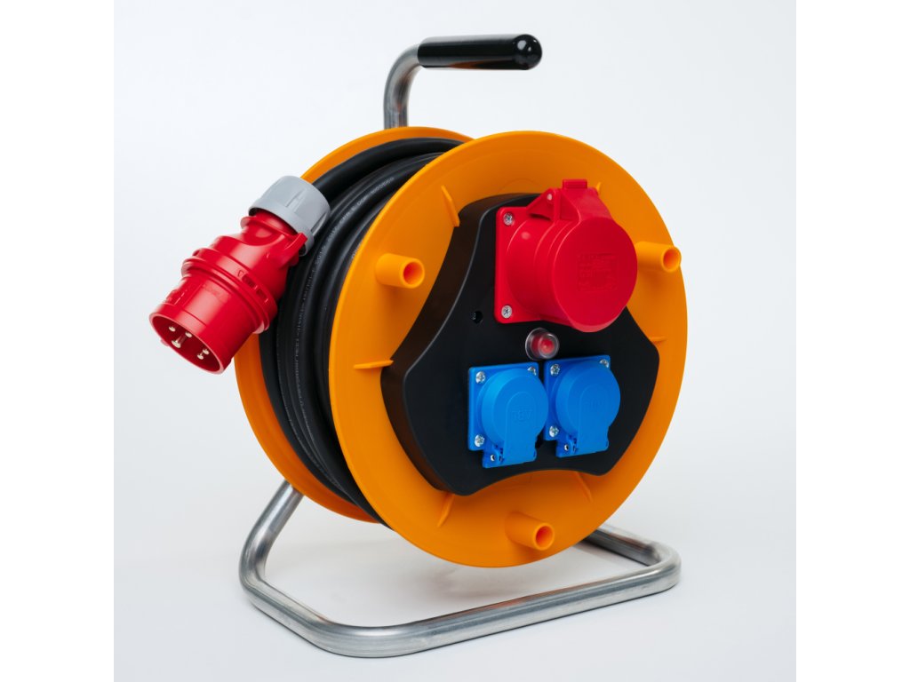 Naviják prodlužovacího přívodu s kombinací zásuvek 1 x CEE 3P+N+PE (16A), 2 x 2P+PE a 25m kabelem H07RN-F5G1,5jmen. napětí 400V~ / 230V~, krytí IP44, max. zatížení navinutý 1000W/230V~ 2500W/400V~, rozvinutý 3000W/230V~ 5000W/400V~hmotnost 6,8 kgrozměry 290 x 200 x 360 mmprůměr cívky 275 mm Certifikováno dle ČSN EN 61242 cívka z odolného plastu - pro pohodlné navinutí celé délky kabelustabilní stojánek z ocelové pozinkované trubky s izolovanou rukojetí - pro snadnou manipulacivestavná 3zásuvka se samozavíracím ochranným víčkem - pro připojení více spotřebičůkrytí IP44 - pro ochranu proti stříkající voděbrzda cívky - proti nechtěnému rozmotání kabelutepelná pojistka - pro ochranu proti přetíženíkvalitní kabel s chloroprenovou izolací - pro střední a velká mechanická namáhání ve stavebnictví, průmyslu a zemědělství, v prostředí obyčejném, studeném, horkém i vlhkém (odolný proti ztíženým klimatickým podmínkám i olejům)určeno pro venkovní použitíDoplňkové parametry