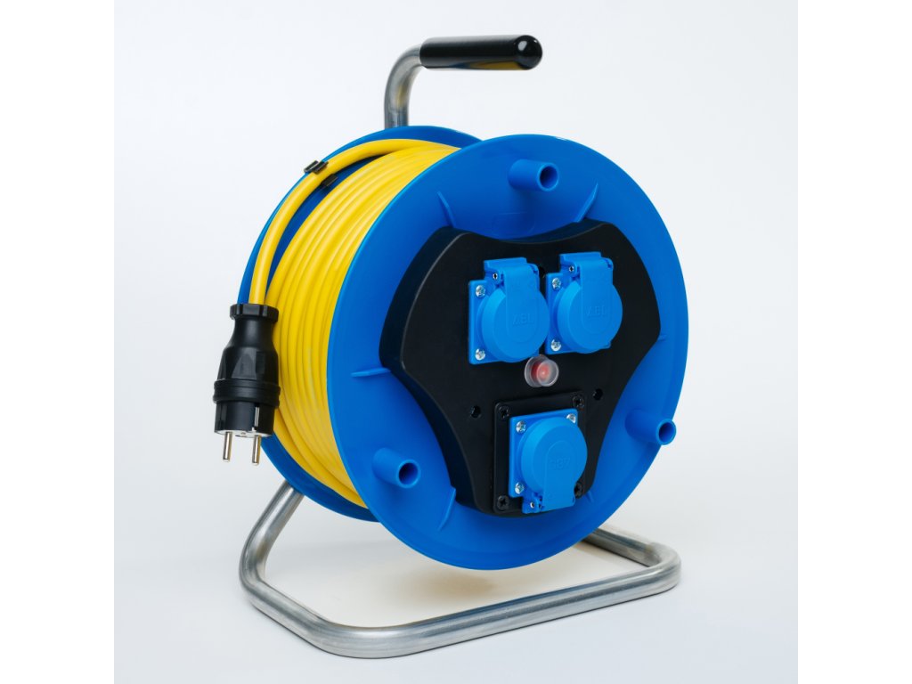 Naviják prodlužovacího přívodu s vestavnou zásuvkou 3 x 2P+PE a 25m kabelem AT-N07V3V3-F3G1,5 (K35)jmen. napětí: 230V~, krytí: IP44, průměr cívky:275 mmmax. zatížení: navinutý 1000W/230V~ / rozvinutý 3000W/230V~hmotnost 4,95 kgrozměry 290 x 200 x 360 mmCertifikováno dle ČSN EN 61242cívka z odolného plastu - pro pohodlné navinutí celé délky kabelustabilní stojánek z ocelové pozinkované trubky s izolovanou rukojetí - pro snadnou manipulacivestavná 3zásuvka se samozavíracím ochranným víčkem - pro připojení více spotřebičůkrytí IP44 - pro ochranu proti stříkající voděbrzda cívky - proti nechtěnému rozmotání kabelutepelná pojistka - pro ochranu proti přetíženímrazuvzdorný kabel s plastovou izolací - pro střední a velká mechanická namáhání ve stavebnictví, průmyslu a zemědělství, v prostředí obyčejném, studeném i vlhkém (odolný proti ztíženým klimatickým podmínkám a teplotám až do -35°C)určeno pro venkovní použitíDoplňkové parametry