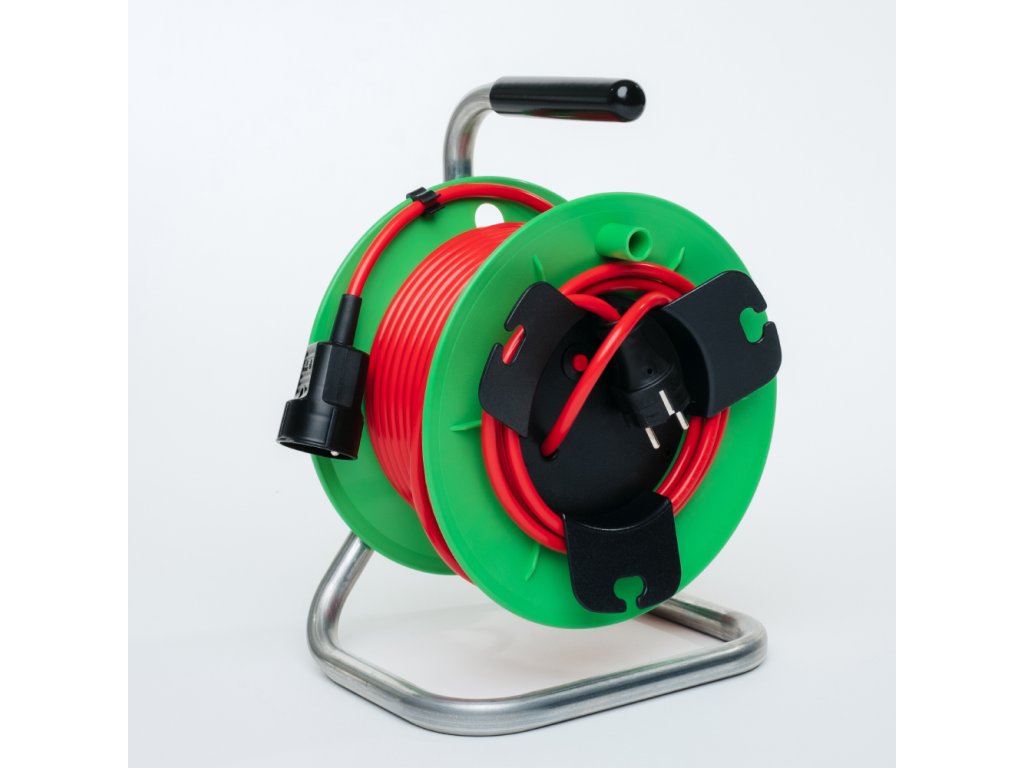 Naviják prodlužovacího přívodu s pohyblivou zásuvkou 2P+PE a 25m kabelem H05VV-F3G1,5 jmen. napětí: 230V~, krytí: IP20, max. zatížení: navinutý 1000W/230V~ / rozvinutý 3000W/230V~hmotnost 3,5 kgrozměry 230 x 200 x 320 mmprůměr cívky 230 mm Certifikováno dle ČSN EN 61242 cívka z odolného plastu - pro pohodlné navinutí celé délky kabelustabilní stojánek z ocelové pozinkované trubky s izolovanou rukojetí - pro snadnou manipulacipohyblivá zásuvka - pro připojení přenosného spotřebičebrzda cívky - proti nechtěnému rozmotání kabelutepelná pojistka - pro ochranu proti přetíženíkvalitní kabel s plastovou izolací - pro střední mechanické namáhání v suchém prostředíurčeno pro vnitřní použitíDoplňkové parametry