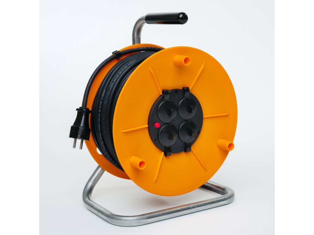 Naviják prodlužovacího přívodu s vestavnou zásuvkou 4 x 2P+PE a 50m kabelem H05RR-F3G1,5jmen. napětí: 230V~, krytí: IP20, max. zatížení: navinutý 1000W/230V~ / rozvinutý 3000W/230V~hmotnost 6,4 kgrozměry 290 x 200 x 360 mmprůměr cívky 275 mm Certifikováno dle ČSN EN 61242 cívka z odolného plastu - pro pohodlné navinutí celé délky kabelustabilní stojánek z ocelové pozinkované trubky s izolovanou rukojetí - pro snadnou manipulacivestavná 4zásuvka s ochranným víčkem - pro připojení více spotřebičůbrzda cívky - proti nechtěnému rozmotání kabelutepelná pojistka - pro ochranu proti přetíženíkvalitní kabel s pryžovou izolací - pro střední mechanická namáhání v prostředí obyčejném, studeném i horkémurčeno pro vnitřní použitíDoplňkové parametry
