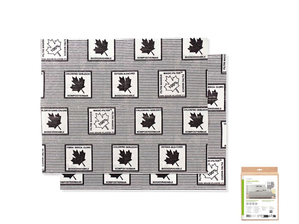 (BAL:1/60ks)Tukový filtr pro digestoře s indikátorem. Univerzální. Nahrazuje produkt: CHFI110MI tukový filtr s indikátoremSamozhášivý tukový filtr s idikátorem,odstraňuje kuchyňský zápach a chrání před nečistotami. Rozměry: 114 x 47 cm. (2ks filtru 57x47cm)Tloušťka: 0,7mm.Hmotnost: 120 g/m2.Baleno papírové krabici se závěsem.Doplňkové parametry