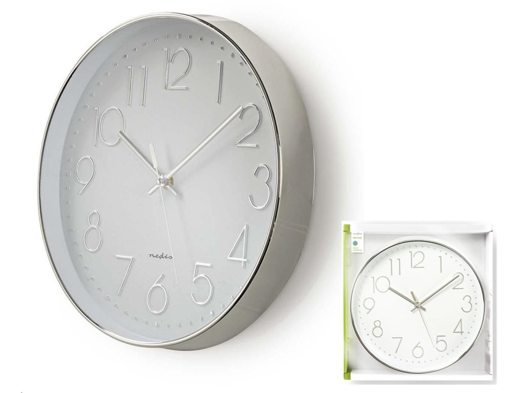 Nedis CLWA015PC30SR nástěnné hodiny ø 30cm bíla/stříbrná