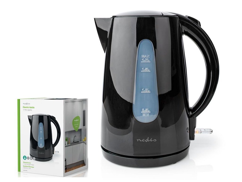 (BAL:1/6) Rychlovarná konvice 1,7l. Otáčení o 360°.Objem 1,7 l - ideální pro žíznivé návštěvy.Navíječ šňůry - pro snadné skladování.Bezdrátová základna otočná o 360 stupňů pro snadnější manipulaci.Ochrana před vařením bez vody - zajistí, aby se konvice, v níž není dostatek vody, nezapnula.Ukazatel hladiny vody se stupnicí.Filtr pro odlučování sedimentů.Vyrobeno z plastu.Napájení 220-240V, 50-60Hz.Příkon: 1850-2200W.Délka kabelu: 0,7m.Barva: černá.Balení: papírová krabice.Doplňkové parametry