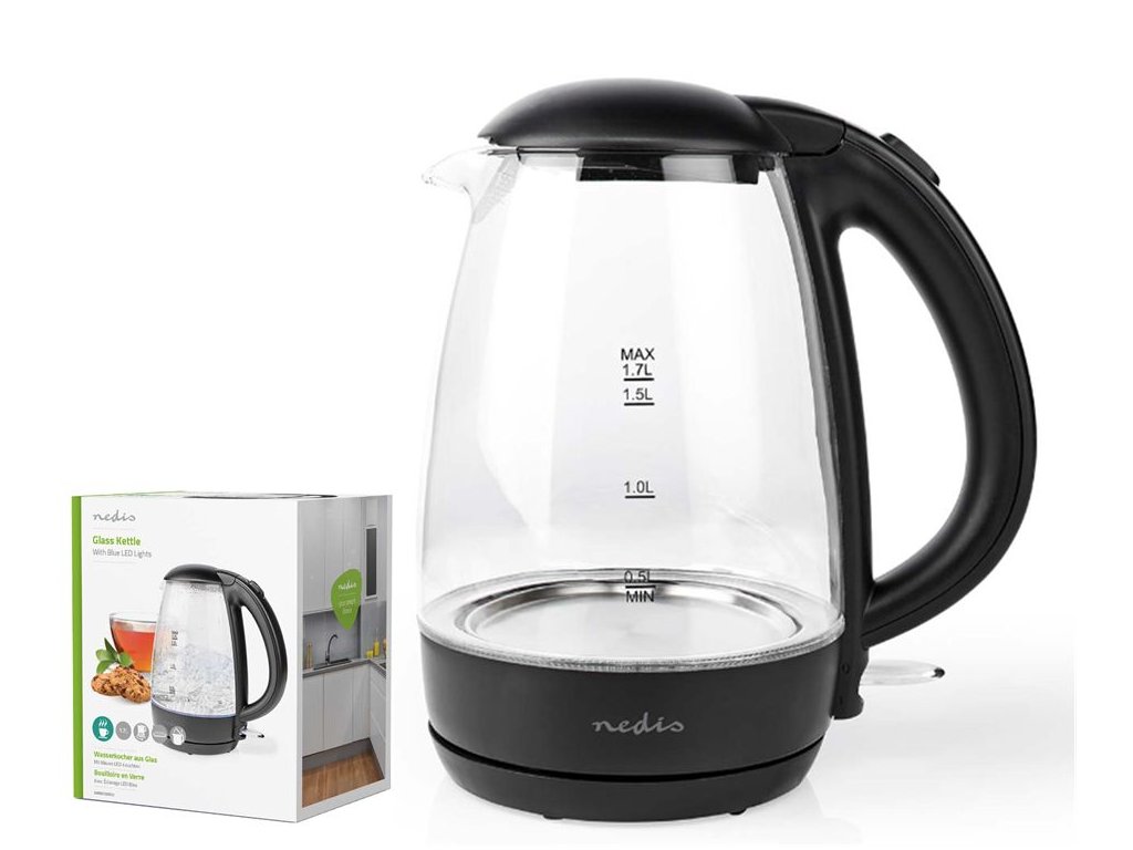 Nedis KAWK330EGS konvice 1,7l sklo černá