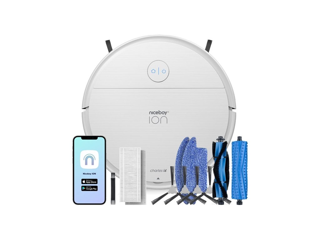 Niceboy ION Charles i6, robotický vysavač s vysáváním a mopováním, má gyroskopickou navigaci a senzory proti kolizím/pádům. Filtrační systém MAX Clean eliminuje nečistoty a alergeny a je ovladatelný přes mobilní aplikaci Niceboy ION.Doplňkové parametry