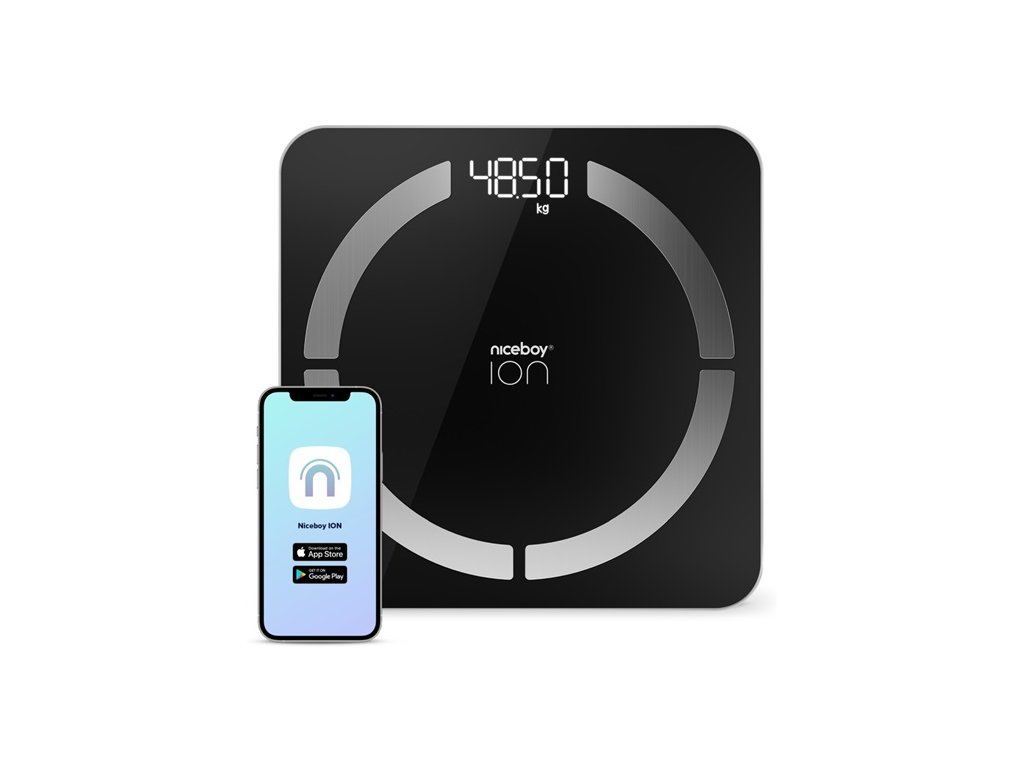 Chytrá osobní váha Niceboy ION SmartScale je schopna měřit 12 tělesných parametrů avytvořit profily až osmi osob. Váhu je možné propojit s mobilní aplikací Niceboy ION. Váhanabízí možnost uložit si data o vašem věku, výšce i pohlaví a díky propojení s aplikací pakmůžete zaznamenávat své úspěchy v roDoplňkové parametry