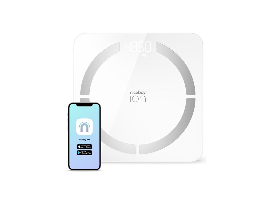 Chytrá osobní váha Niceboy ION SmartScale je schopna měřit 12 tělesných parametrů avytvořit profily až osmi osob. Váhu je možné propojit s mobilní aplikací Niceboy ION. Váhanabízí možnost uložit si data o vašem věku, výšce i pohlaví a díky propojení s aplikací pakmůžete zaznamenávat své úspěchy v roDoplňkové parametry